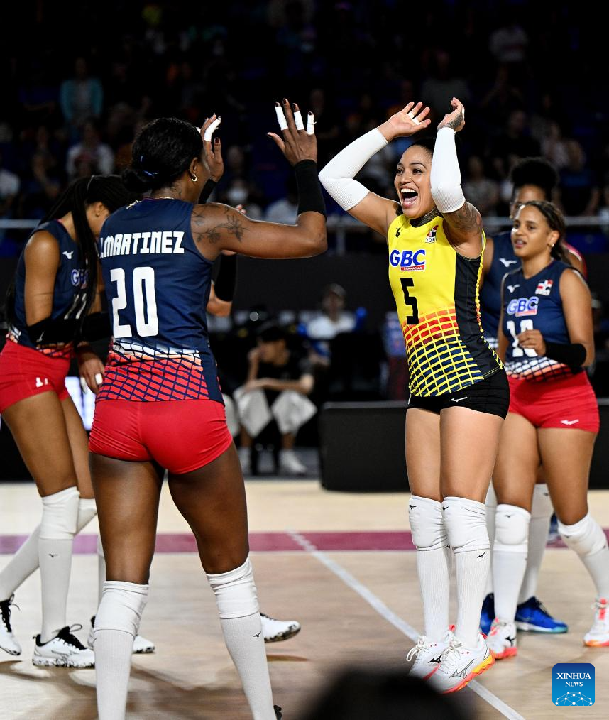 CHIANG MAI, 25 agosto, 2025 (Xinhua) -- Brenda Castillo (d-frente) de la República Dominicana, festeja con su compañera Brayelin Elizabeth Martínez (frente-i) durante el partido del grupo F de la fase preliminar entre República Dominicana y México, en el Campeonato Mundial de Voleibol Femenino, en Chiang Mai, Tailandia, el 25 de agosto de 2025. (Xinhua/Hou Zhaokang)