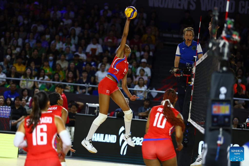 CHIANG MAI, 25 agosto, 2025 (Xinhua) -- Yaneirys Rodríguez (frente), de República Dominicana, reacciona durante el partido del grupo F de la fase preliminar entre República Dominicana y México, en el Campeonato Mundial de Voleibol Femenino, en Chiang Mai, Tailandia, el 25 de agosto de 2025. (Xinhua/Sun Weitong)