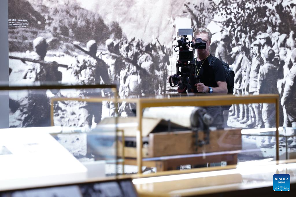 BEIJING, 27 agosto, 2025 (Xinhua) -- Un periodista graba videos durante su visita al Museo de la Guerra de Resistencia del Pueblo Chino contra la Agresión Japonesa, en Beijing, capital de China, el 27 de agosto de 2025. Cerca de 200 periodistas acudieron el miércoles al Museo de la Guerra de Resistencia del Pueblo Chino para realizar visitas y entrevistas. Los periodistas participantes provenían de más de 130 medios de comunicación nacionales e internacionales de más de 60 países y regiones. (Xinhua/Zhang Yuwei)