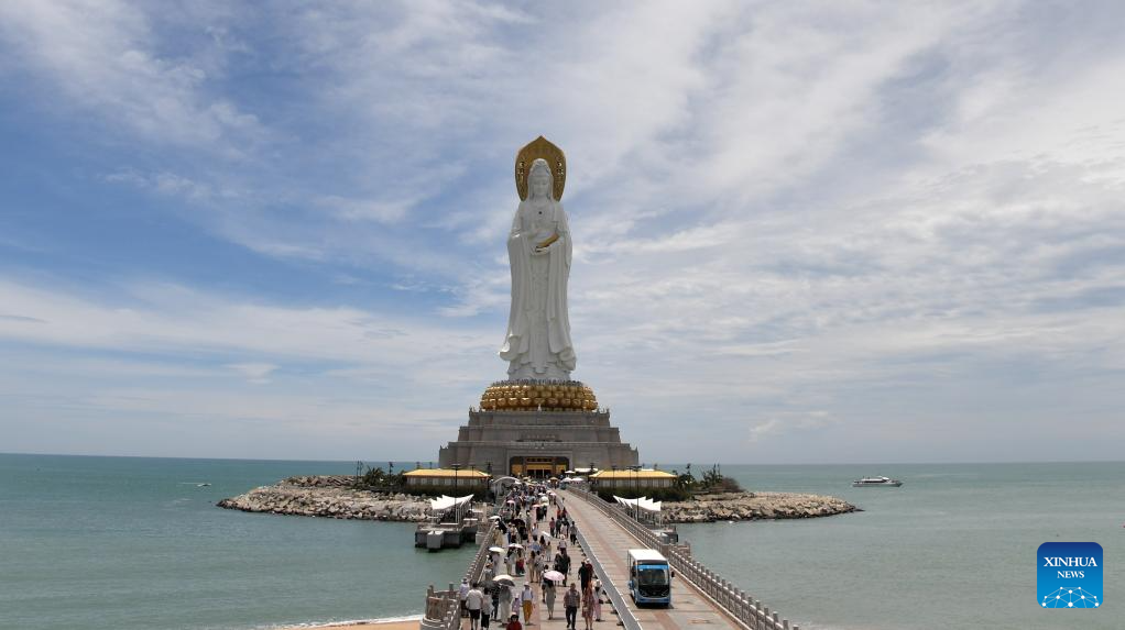SANYA, 27 agosto, 2025 (Xinhua) -- Turistas visitan la Zona de Turismo Cultural de Nanshan, en Sanya, en la provincia de Hainan, en el sur de China, el 27 de agosto de 2025. Tras el paso del tifón Kajiki, la ciudad de Sanya ha actuado con rapidez para restablecer su mercado turístico. (Xinhua/Zhao Yingquan)