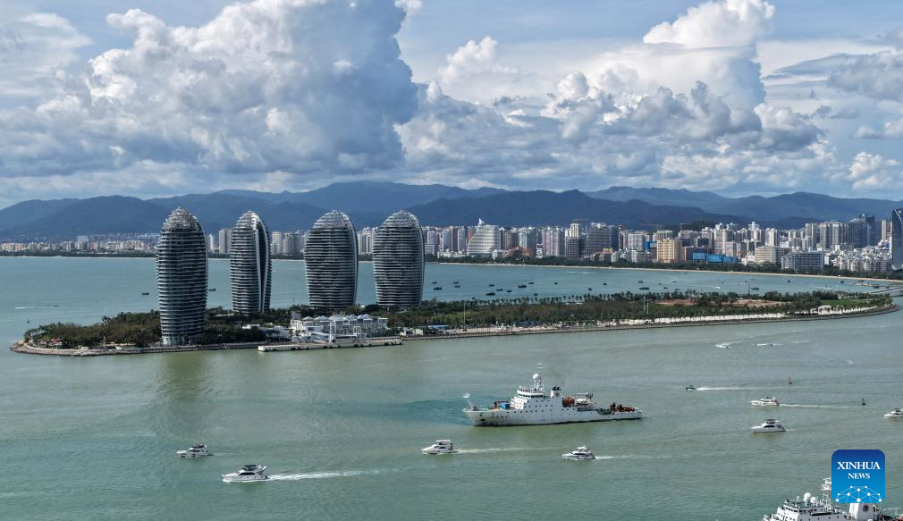 SANYA, 27 agosto, 2025 (Xinhua) -- Vista aérea tomada con un dron el 27 de agosto de 2025 de turistas realizando un viaje en yate para hacer turismo, en Sanya, en la provincia de Hainan, en el sur de China. Tras el paso del tifón Kajiki, la ciudad de Sanya ha actuado con rapidez para restablecer su mercado turístico. (Xinhua/Zhao Yingquan)