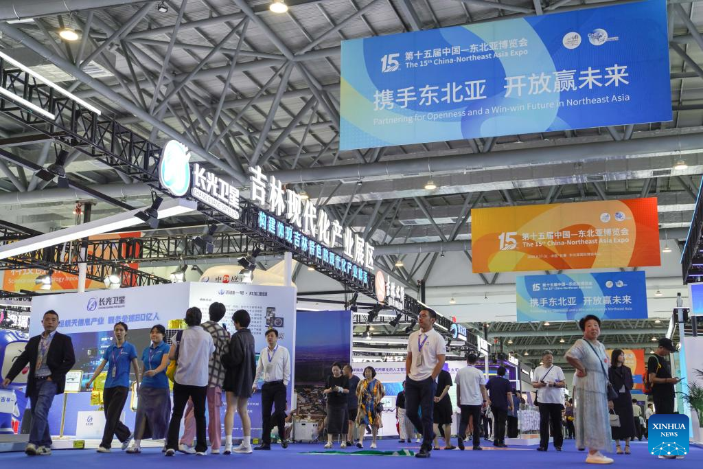 CHANGCHUN, 27 agosto, 2025 (Xinhua) -- Personas visitan la 15 Exposición China-Noreste Asiático, en Changchun, en la provincia de Jilin, en el noreste de China, el 27 de agosto de 2025. La 15 Exposición China-Noreste Asiático fue inaugurada aquí el miércoles. (Xinhua/Xu Chang)