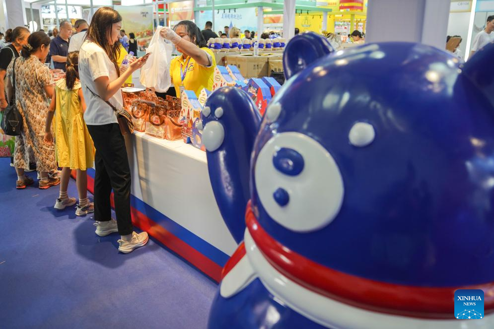 CHANGCHUN, 27 agosto, 2025 (Xinhua) -- Visitantes compran productos rusos en la 15 Exposición China-Noreste Asiático, en Changchun, en la provincia de Jilin, en el noreste de China, el 27 de agosto de 2025. La 15 Exposición China-Noreste Asiático fue inaugurada aquí el miércoles. (Xinhua/Xu Chang)