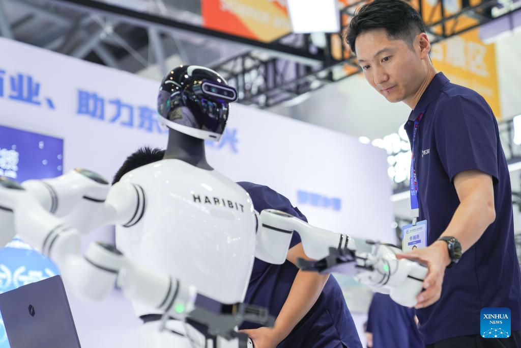 CHANGCHUN, 27 agosto, 2025 (Xinhua) -- Trabajadores ajustan un robot humanoide en la 15 Exposición China-Noreste Asiático, en Changchun, en la provincia de Jilin, en el noreste de China, el 27 de agosto de 2025. La 15 Exposición China-Noreste Asiático fue inaugurada aquí el miércoles. (Xinhua/Xu Chang)