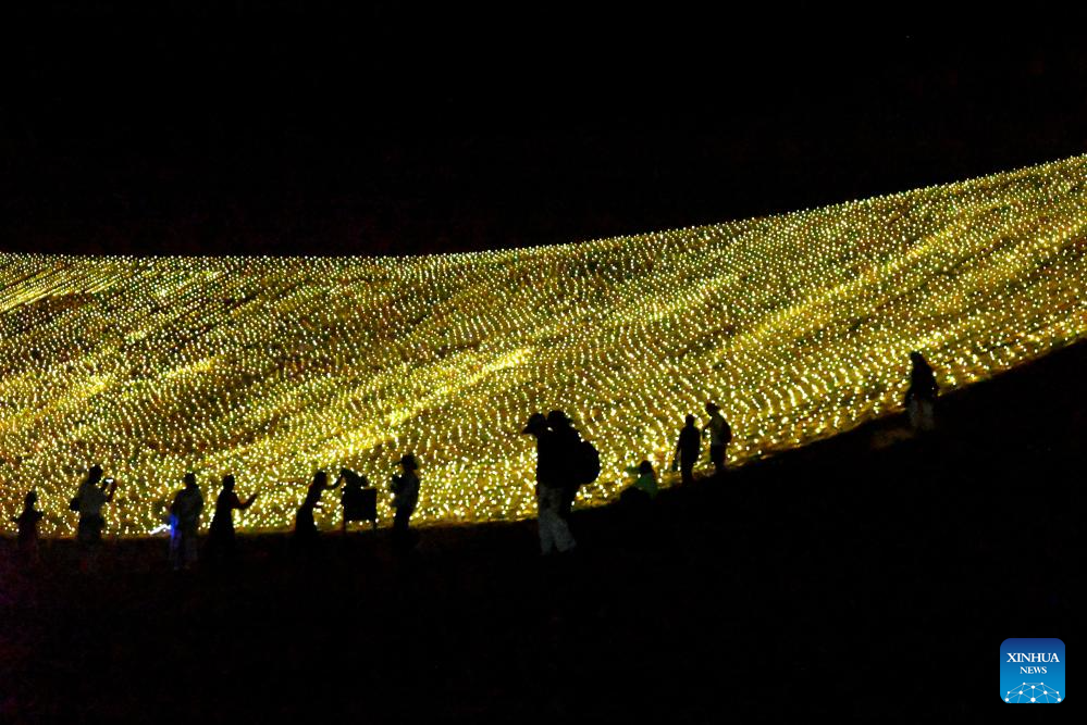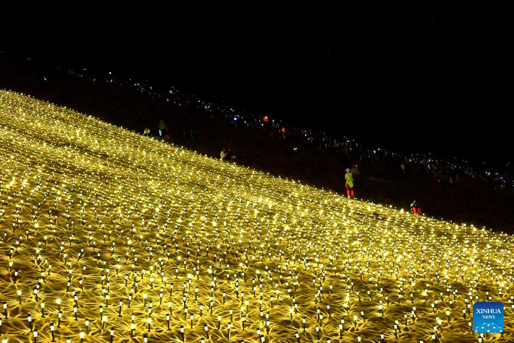Monta?a Mingsha iluminada con luces alimentadas por energía solar