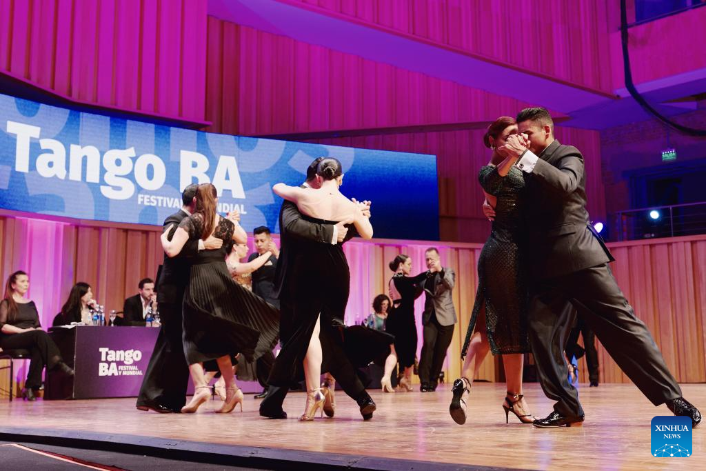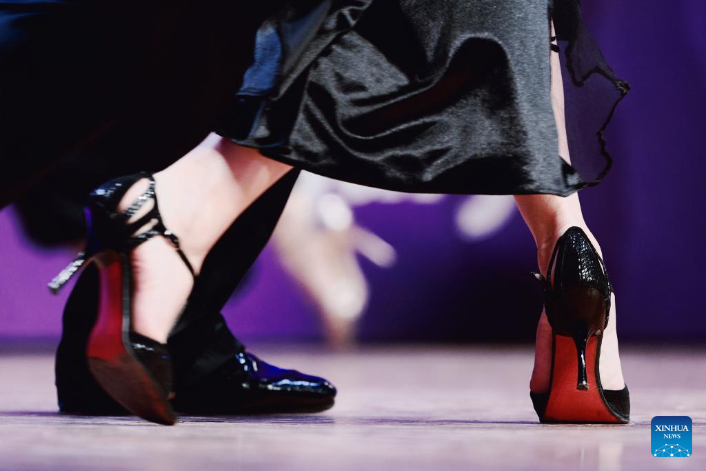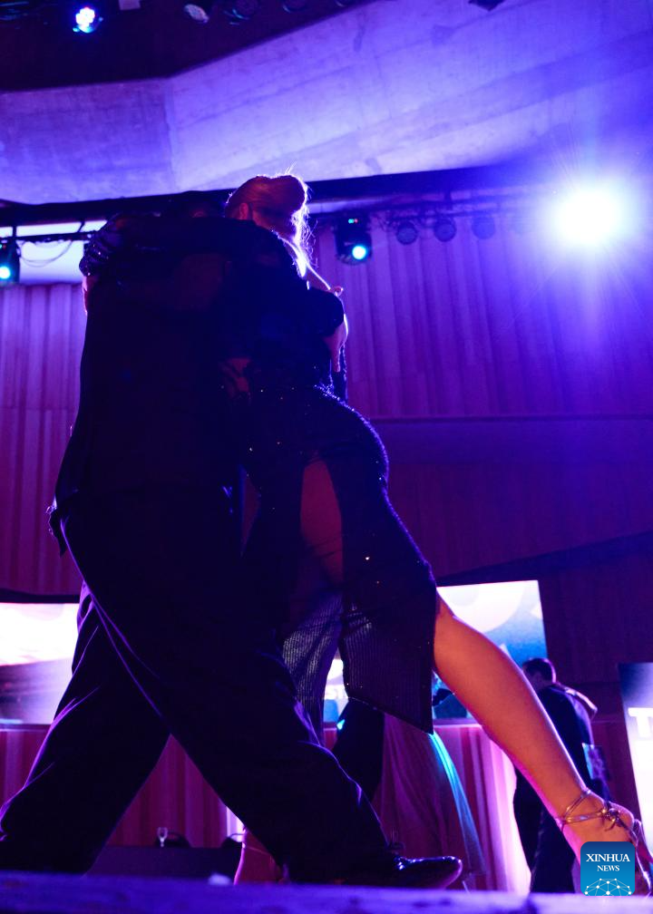 BUENOS AIRES, 30 agosto, 2025 (Xinhua) -- Imagen del 29 de agosto de 2025 de bailarines compitiendo durante la semifinal del Festival y Campeonato Mundial de Tango de Buenos Aires 2025, en Buenos Aires, Argentina. (Xinhua/Meng Dingbo)