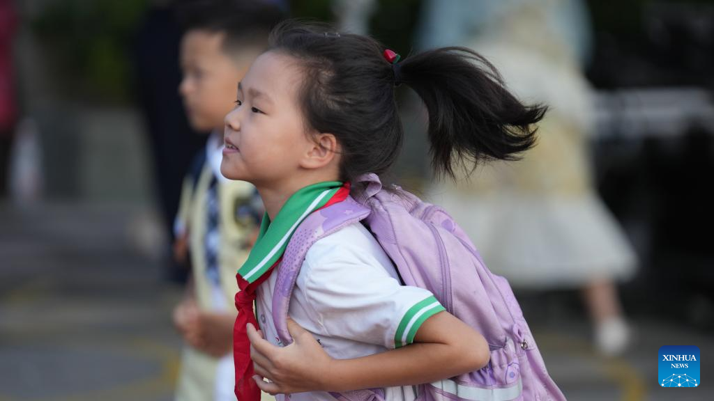 GUIYANG, 1 septiembre, 2025 (Xinhua) -- Una estudiante llega a una escuela primaria, en Guiyang, en la provincia de Guizhou, en el suroeste de China, el 1 de septiembre de 2025. El nuevo semestre para las escuelas primarias y secundarias comenzó el lunes en muchas partes de China. (Xinhua/Tao Liang)