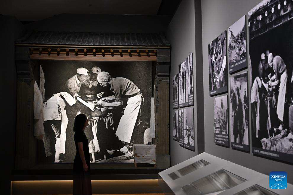 Periodistas visitan exposición "Amigos Internacionales y la Guerra de Resistencia de China" durante vista previa para prensa en Beijing