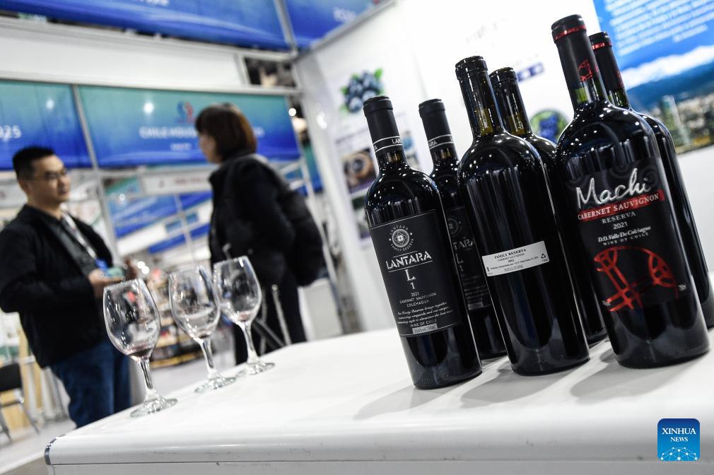 SANTIAGO, 8 septiembre, 2025 (Xinhua) -- Personas visitan un estand de vinos chilenos durante la inauguración de la Expo Industrial Internacional Chile 2025, en Santiago, capital de Chile, el 8 de septiembre de 2025. (Xinhua/Jorge Villegas)