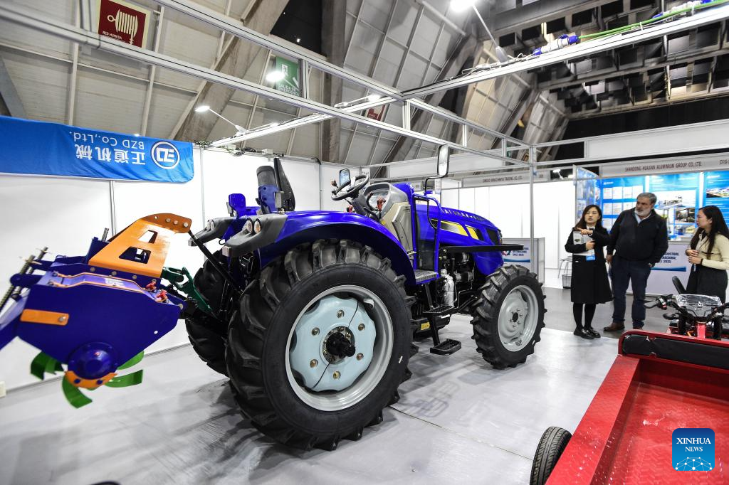 SANTIAGO, 8 septiembre, 2025 (Xinhua) -- Personas visitan el estand de una compañía agrícola china durante la inauguración de la Expo Industrial Internacional Chile 2025, en Santiago, capital de Chile, el 8 de septiembre de 2025. (Xinhua/Jorge Villegas)
