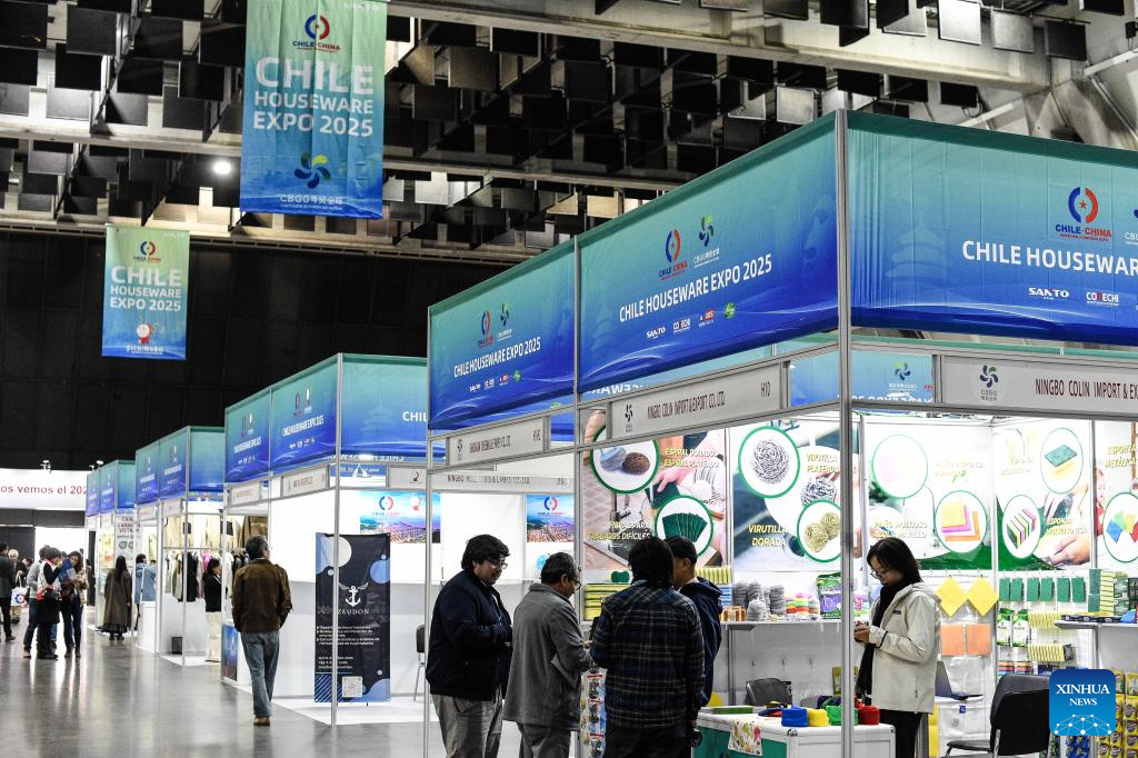SANTIAGO, 8 septiembre, 2025 (Xinhua) -- Personas visitan un estand de una compañía china durante la inauguración de la Expo Industrial Internacional Chile 2025, en Santiago, capital de Chile, el 8 de septiembre de 2025. (Xinhua/Jorge Villegas)
