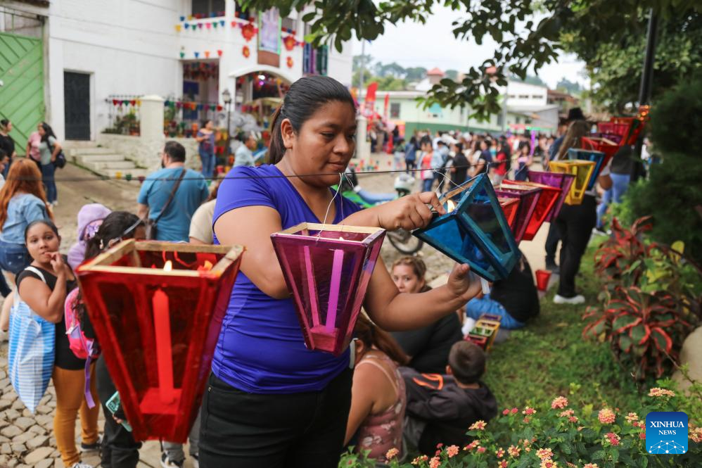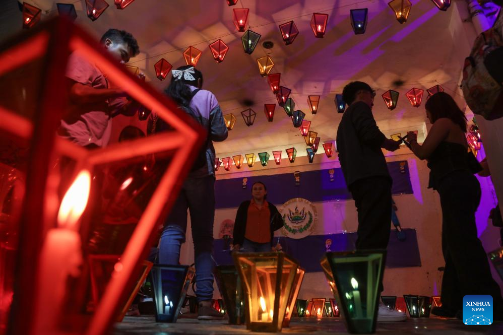 AHUACHAPÁN, El Salvador, 8 sep (Xinhua) -- La noche cayó sobre la ciudad de Ahuachapán en el occidente de El Salvador y con ella una marea de luces coloridas transformó el domingo sus calles en un escenario vibrante con miles de farolitos de madera y papel de tonos brillantes que cubrieron balcones, aceras y plazas, al encender una de las tradiciones culturales más queridas del país.