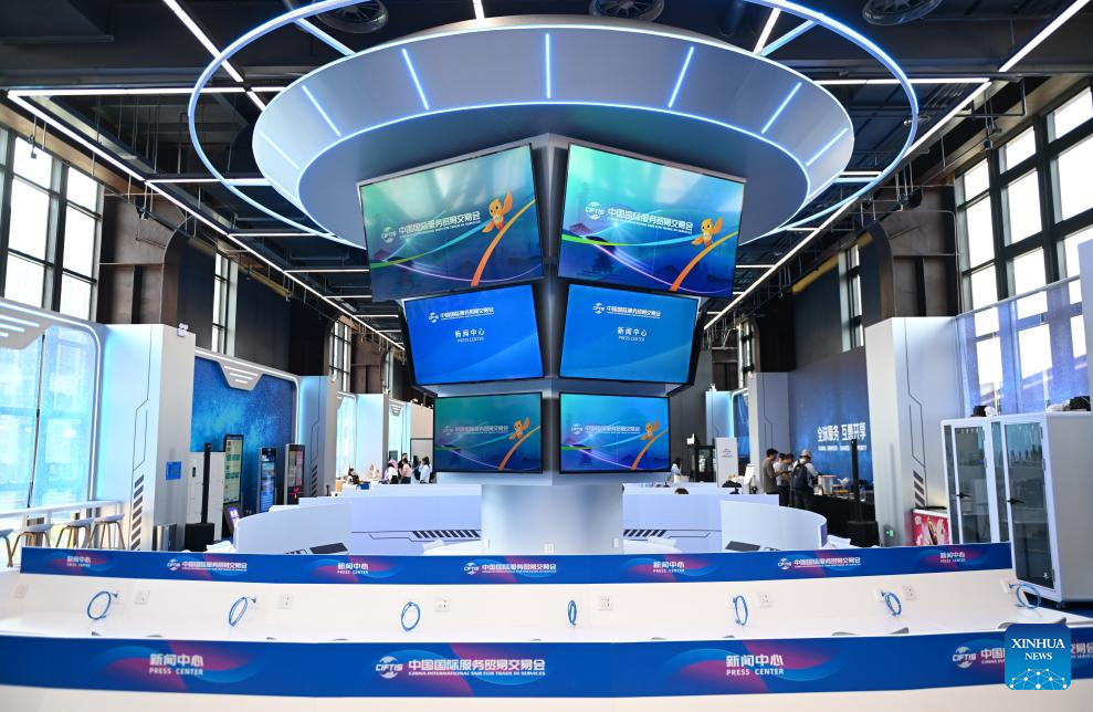 BEIJING, 9 septiembre, 2025 (Xinhua) -- Imagen del 9 de septiembre de 2025 del centro de prensa de la próxima Feria Internacional de Comercio de Servicios de China (CIFTIS, por sus siglas en inglés) 2025 en el Parque Shougang, en Beijing, capital de China. La CIFTIS 2025 está prevista que tenga lugar aquí del 10 al 14 de septiembre. (Xinhua/Chen Zhonghao)