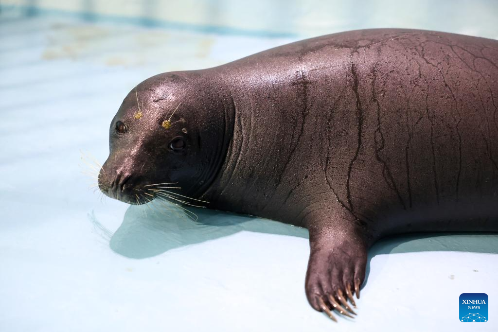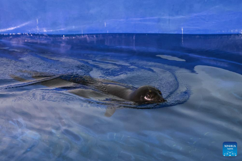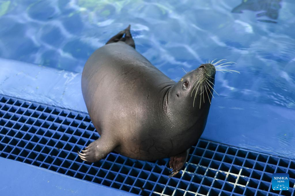 LINGSHUI, 9 septiembre, 2025 (Xinhua) -- Imagen del 8 de septiembre de 2025 de la foca Anong vista en el Centro de Conservación y Rescate del Océano Azul, en Lingshui, en la provincia de Hainan, en el sur de China. Una foca llamada Anong, conocida por interactuar con los pescadores locales en una playa sin urbanizar del poblado de Dongjiao, en la ciudad de Wenchang, en la provincia de Hainan, fue trasladada a un centro de conservación de fauna acuática en Lingshui para su protección y su regreso a su hábitat en el futuro. (Xinhua/Zhang Liyun)