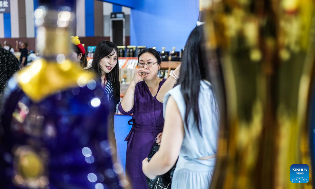 GUIYANG, 9 septiembre, 2025 (Xinhua) -- Consumidoras degustan bebidas durante la 14 Exposición Internacional de Bebidas Alcohólicas de China (Guizhou), en Guiyang, en la provincia de Guizhou, en el suroeste de China, el 9 de septiembre de 2025. La exposición comenzó aquí el martes. (Xinhua/Tao Liang)