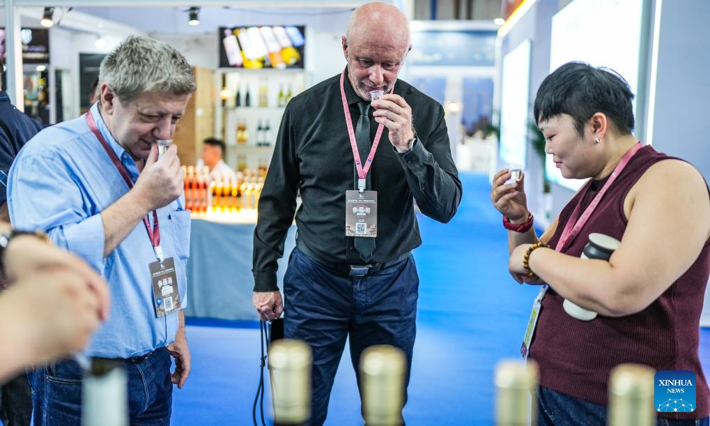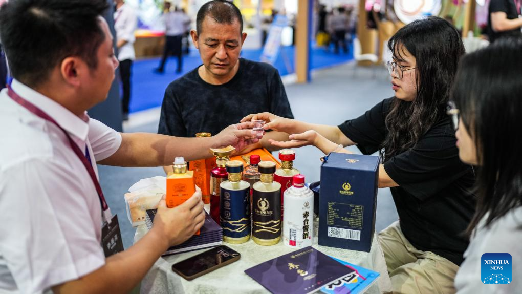 GUIYANG, 9 septiembre, 2025 (Xinhua) -- Consumidores degustan bebidas durante la 14 Exposición Internacional de Bebidas Alcohólicas de China (Guizhou), en Guiyang, en la provincia de Guizhou, en el suroeste de China, el 9 de septiembre de 2025. La exposición comenzó aquí el martes. (Xinhua/Tao Liang)