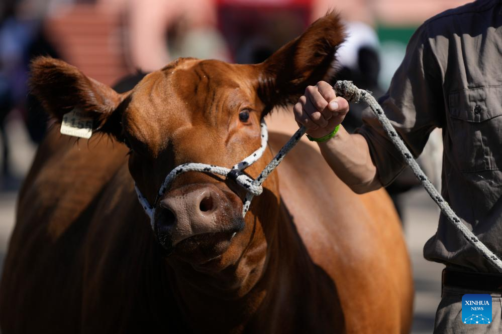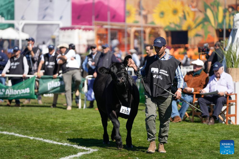 MONTEVIDEO, 9 septiembre, 2025 (Xinhua) -- Un vacuno es presentado a los jueces durante la edición 120 de la Exposición Internacional de Ganadería y Muestra Internacional Agro Industrial y Comercial "Expo Prado", en Montevideo, capital de Uruguay, el 9 de septiembre de 2025. (Xinhua/Nicolás Celaya)