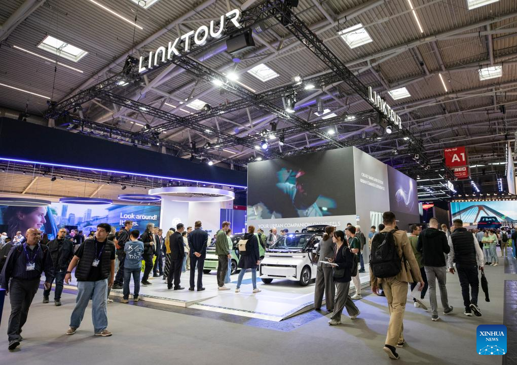 MUNICH, 10 septiembre, 2025 (Xinhua) -- Personas visitan la zona de exposición de LinkTour durante la IAA Mobility 2025, en Múnich, Alemania, el 10 de septiembre de 2025. La IAA Mobility 2025, una de las ferias de movilidad más grandes del mundo, comenzó aquí el martes, con fabricantes y proveedores de automóviles globales mostrando vehículos eléctricos, conducción autónoma e innovaciones impulsadas por software. (Xinhua/Zhang Fan)