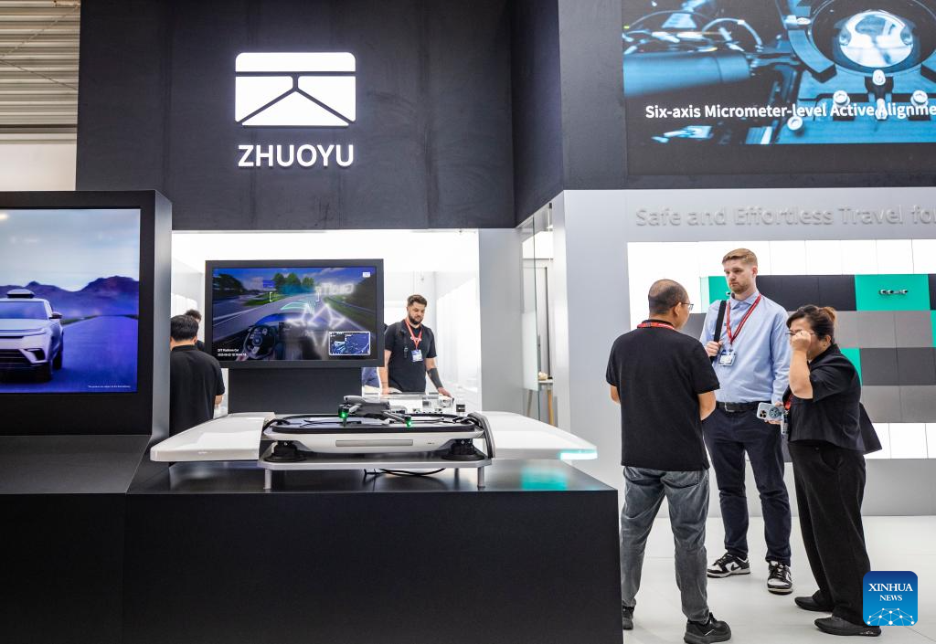 MUNICH, 10 septiembre, 2025 (Xinhua) -- Personas visitan la zona de exposición de Zhuoyu durante la IAA Mobility 2025, en Múnich, Alemania, el 10 de septiembre de 2025. La IAA Mobility 2025, una de las ferias de movilidad más grandes del mundo, comenzó aquí el martes, con fabricantes y proveedores de automóviles globales mostrando vehículos eléctricos, conducción autónoma e innovaciones impulsadas por software. (Xinhua/Zhang Fan)