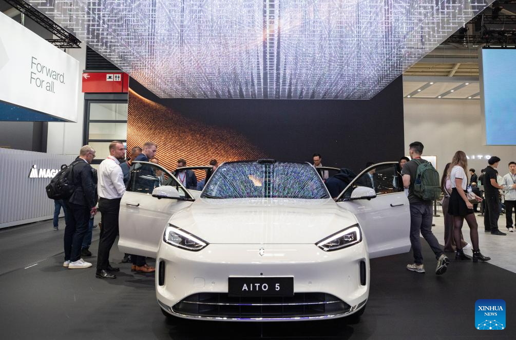 MUNICH, 10 septiembre, 2025 (Xinhua) -- Personas visitan la zona de exposición de AITO durante la IAA Mobility 2025, en Múnich, Alemania, el 10 de septiembre de 2025. La IAA Mobility 2025, una de las ferias de movilidad más grandes del mundo, comenzó aquí el martes, con fabricantes y proveedores de automóviles globales mostrando vehículos eléctricos, conducción autónoma e innovaciones impulsadas por software. (Xinhua/Zhang Fan)