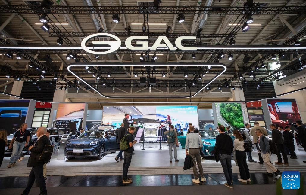 MUNICH, 10 septiembre, 2025 (Xinhua) -- Personas visitan la zona de exposición de GAC durante la IAA Mobility 2025, en Múnich, Alemania, el 10 de septiembre de 2025. La IAA Mobility 2025, una de las ferias de movilidad más grandes del mundo, comenzó aquí el martes, con fabricantes y proveedores de automóviles globales mostrando vehículos eléctricos, conducción autónoma e innovaciones impulsadas por software. (Xinhua/Zhang Fan)