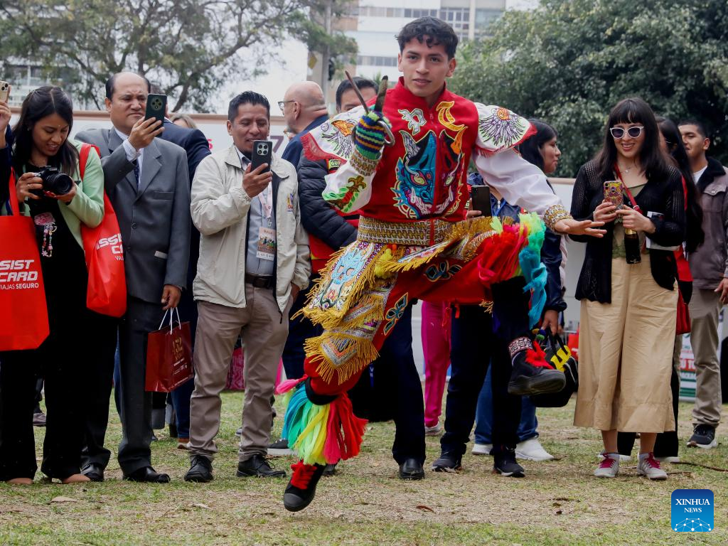 LIMA, 11 septiembre, 2025 (Xinhua) -- Una persona realiza la danza de las tijeras en la VIII Feria Internacional de Turismo "Fiavit 2025", en Lima, Perú, el 11 de septiembre de 2025. La "Fiavit 2025" se desarrolla del 11 al 12 de septiembre en la capital de Perú con una amplia oferta turística nacional e internacional, en los jardines del Museo de Arte Contemporáneo de Lima, en el distrito capitalino de Barranco. (Xinhua/Mariana Bazo)
