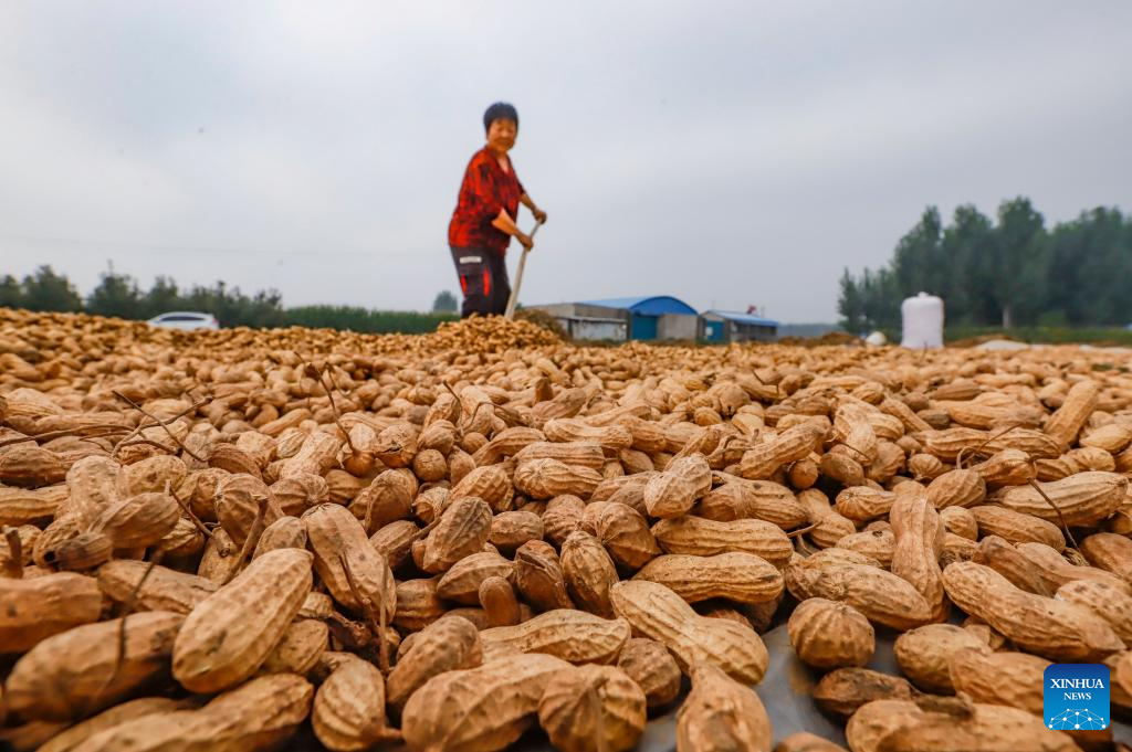 BEIJING, 11 septiembre, 2025 (Xinhua) -- Una aldeana airea maní, en el poblado de Dongxinzhuang de la ciudad de Zunhua, en la provincia de Hebei, en el norte de China, el 11 de septiembre de 2025. (Xinhua/Liu Mingxiang)