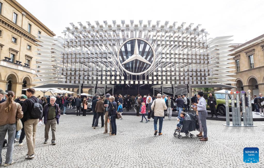 MUNICH, 11 septiembre, 2025 (Xinhua) -- Personas visitan la zona de exposición de Mercedes-Benz en el Espacio Abierto de la IAA Mobility 2025, en Múnich, Alemania, el 11 de septiembre de 2025. La IAA Mobility 2025, una de las ferias de movilidad más grandes del mundo, comenzó aquí el martes, con fabricantes y proveedores de automóviles globales mostrando vehículos eléctricos, conducción autónoma e innovaciones impulsadas por software. (Xinhua/Zhang Fan)