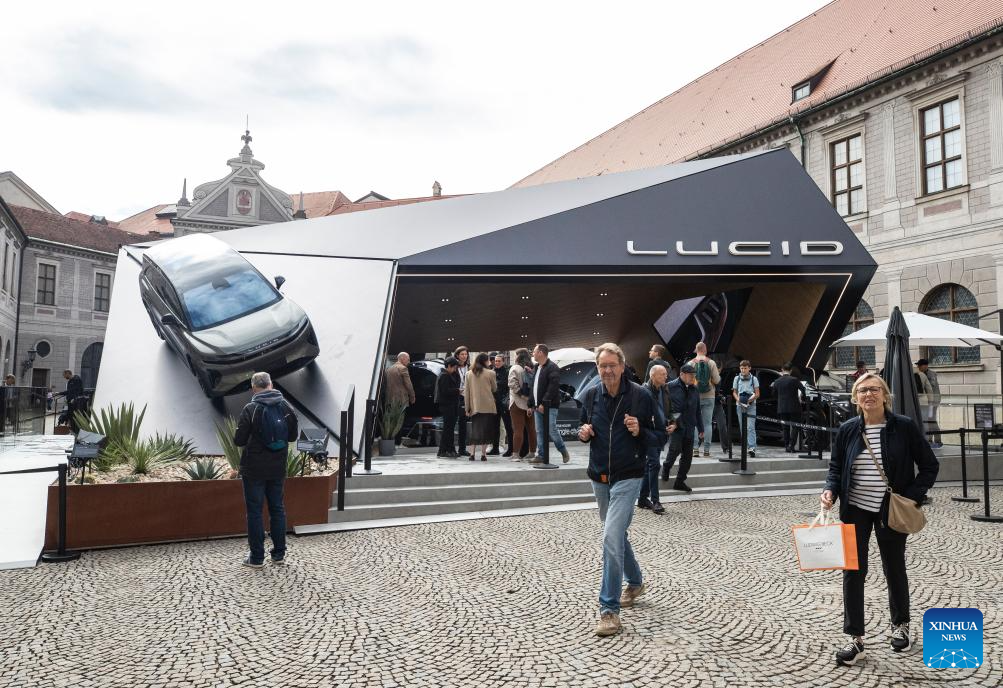 MUNICH, 11 septiembre, 2025 (Xinhua) -- Personas visitan la zona de exposición de Lucid Motors en el Espacio Abierto de la IAA Mobility 2025, en Múnich, Alemania, el 11 de septiembre de 2025. La IAA Mobility 2025, una de las ferias de movilidad más grandes del mundo, comenzó aquí el martes, con fabricantes y proveedores de automóviles globales mostrando vehículos eléctricos, conducción autónoma e innovaciones impulsadas por software. (Xinhua/Zhang Fan)