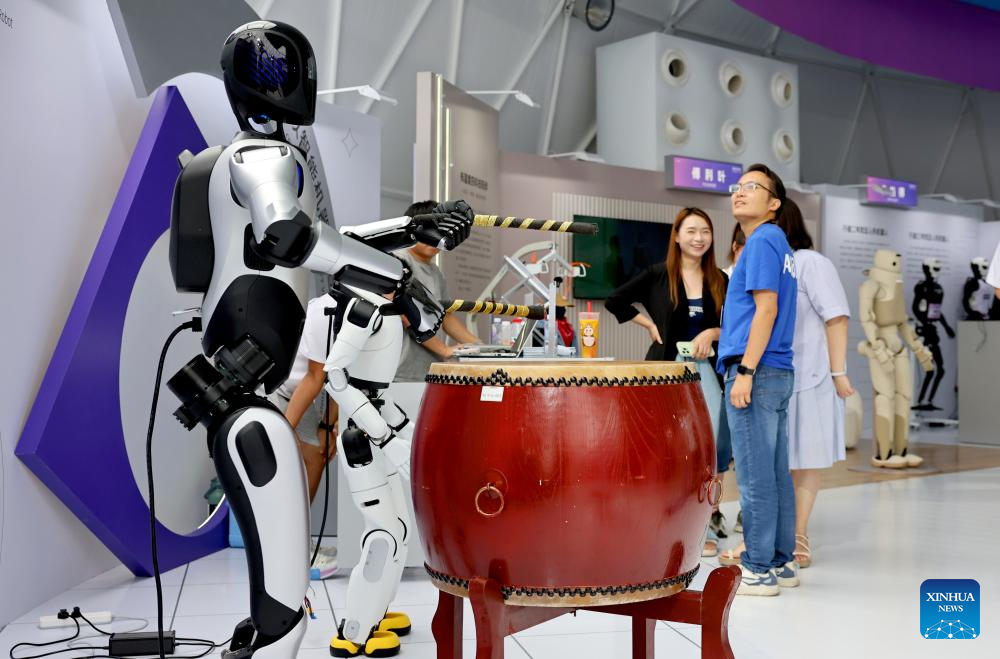 SHANGHAI, 11 septiembre, 2025 (Xinhua) -- Imagen del 10 de septiembre de 2025 de una presentación de tambores con robots durante la Conferencia de Inclusión sobre el Bund 2025, en Shanghai, en el este de China. Bajo el lema "Camino hacia el Crecimiento Innovador", la conferencia de 2025 cuenta con más de 40 foros de análisis, una jornada temática global, más de 10 escenarios, una exposición tecnológica de casi 10.000 metros cuadrados, un mercado de tecnología de 5.000 metros cuadrados, un concurso de innovación en IA, una feria de empleo tecnológica y un encuentro con inversores. (Xinhua/Fang Zhe)