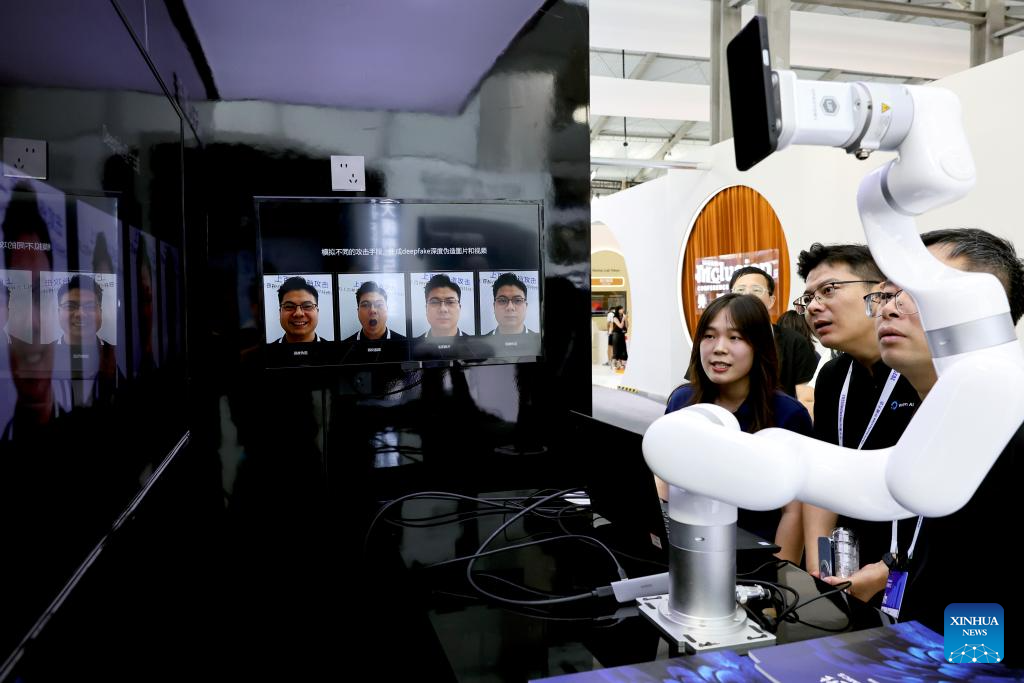 SHANGHAI, 11 septiembre, 2025 (Xinhua) -- Imagen del 10 de septiembre de 2025 de visitantes aprendiendo sobre un dispositivo para identificar la tecnología de cambio de rostro con IA durante la Conferencia de Inclusión sobre el Bund 2025, en Shanghai, en el este de China. Bajo el lema "Camino hacia el Crecimiento Innovador", la conferencia de 2025 cuenta con más de 40 foros de análisis, una jornada temática global, más de 10 escenarios, una exposición tecnológica de casi 10.000 metros cuadrados, un mercado de tecnología de 5.000 metros cuadrados, un concurso de innovación en IA, una feria de empleo tecnológica y un encuentro con inversores. (Xinhua/Fang Zhe)