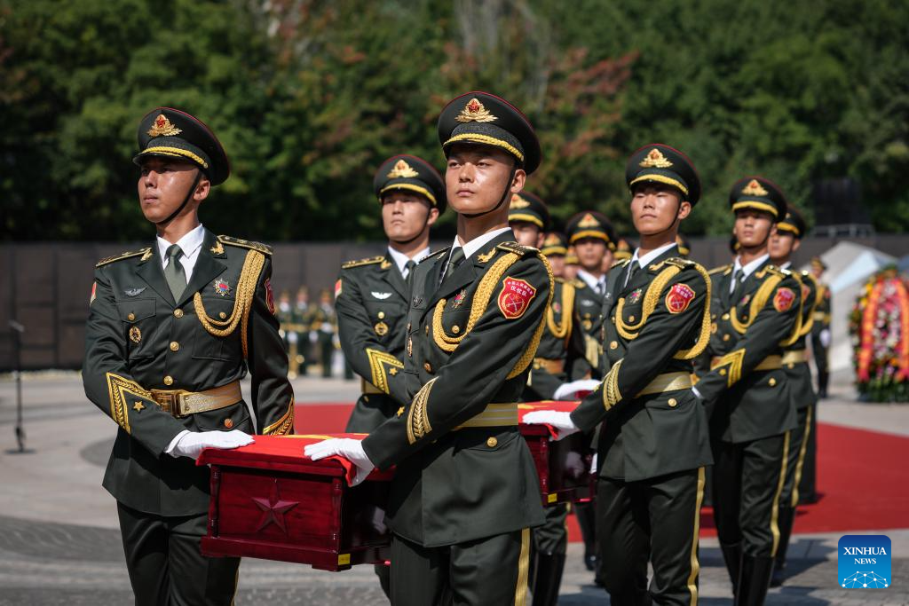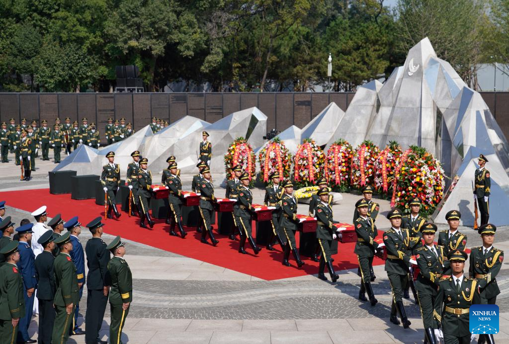 SHENYANG, 13 sep (Xinhua) -- Los restos de 30 mártires de los Voluntarios del Pueblo Chino (VPCh) que ofrendaron su vida durante la Guerra de Resistencia contra la Agresión de Estados Unidos y Ayuda a Corea (1950-1953) fueron sepultados hoy sábado en Shenyang, capital de la provincia de Liaoning, en el noreste de China.