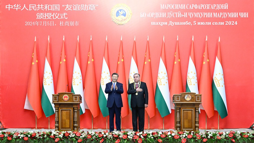 Xi otorga medalla de la amistad de China a presidente tayiko Rahmon
