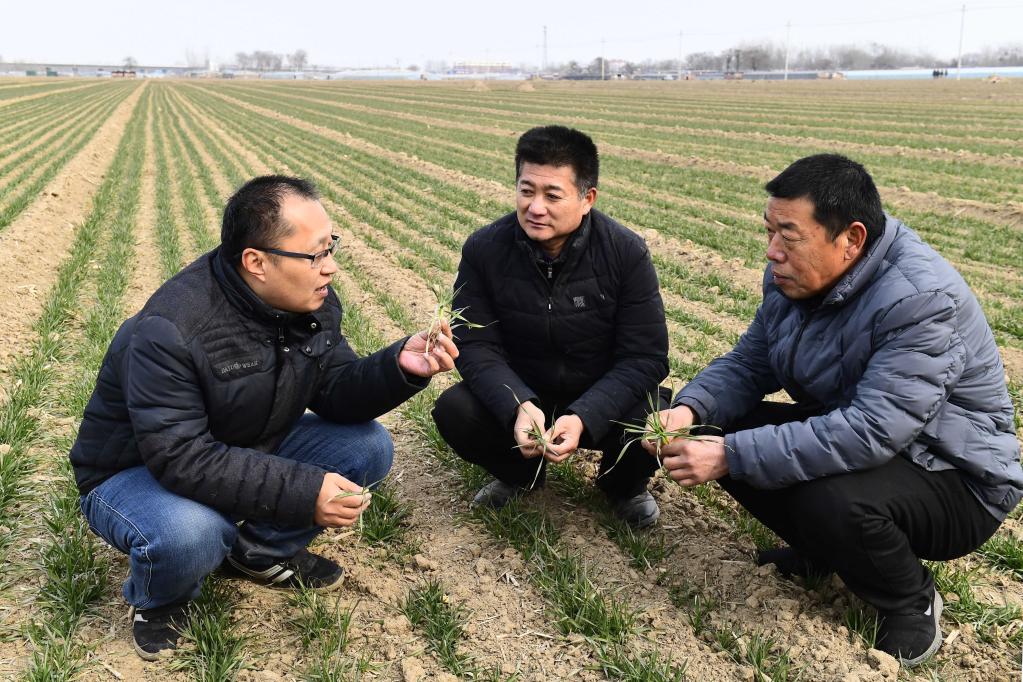 Shandong: Técnicos agrícolas ense?an a agricultores sobre conocimiento de plántulas de trigo
